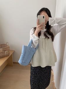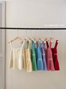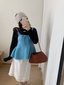 2025早秋新款韩系简约百搭甜美辣妹针织一体叠穿背心蝴蝶结吊带女