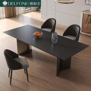 德利丰岩板餐桌简约现代黑色岛台餐桌小户型意式极简家用长方形桌