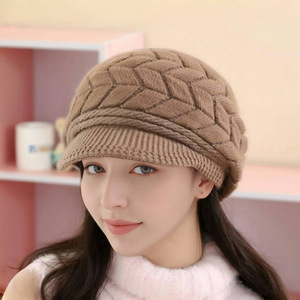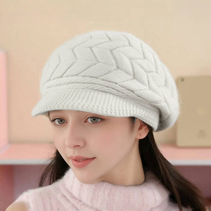 跨境秋冬时尚百搭纯色贝雷帽子套装中老年人女加绒加厚针织毛线帽