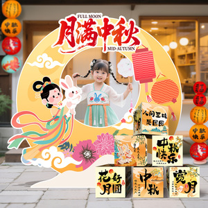 中秋节场景氛围布置装饰商场活动主题拍照打卡道具背景墙摆件KT板