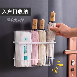 入户门后磁吸口罩收纳盒神器雨伞架玄关门口磁铁防盗门门上置物架