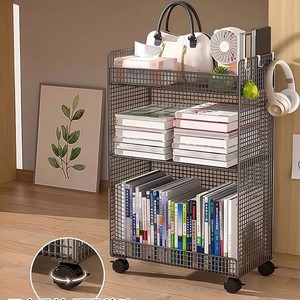 可移动书架落地桌下置物架书本收纳桌旁家用桌边小推车移动带轮子