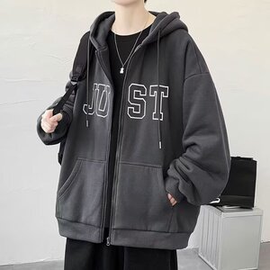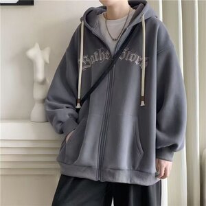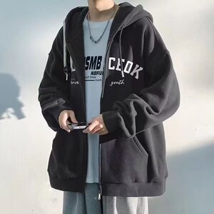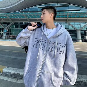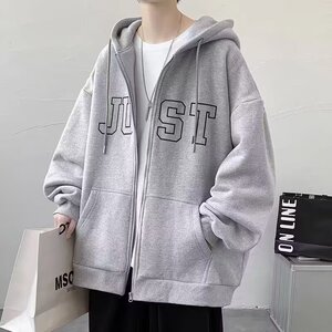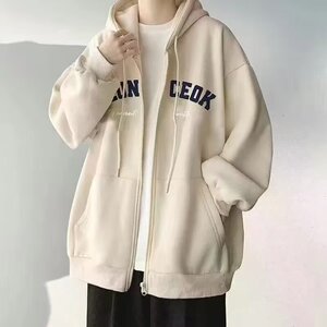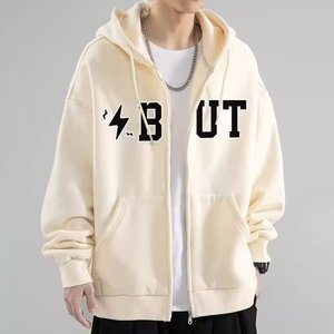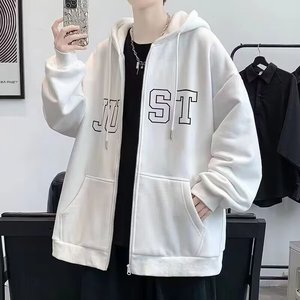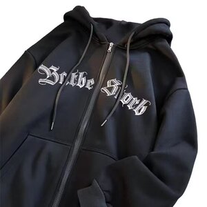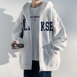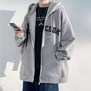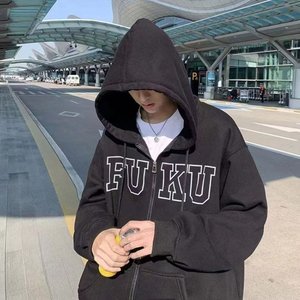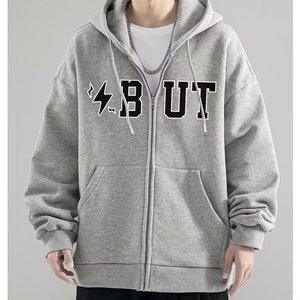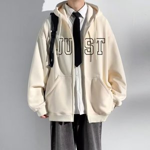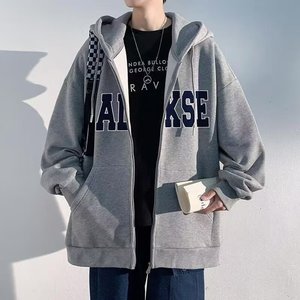 跨境代发美式复古卫衣男春秋季拉链男士外套港风宽松百搭卫衣男