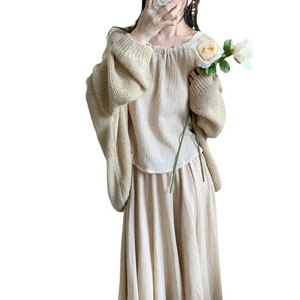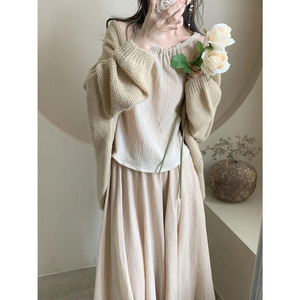 纯欲风套装女春夏2025新款毛衣开衫+挂脖吊带背心+半身长裙三件套