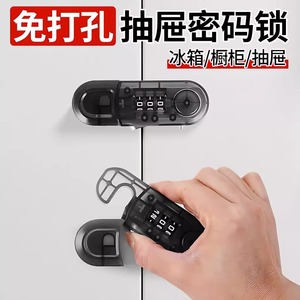 抽屉密码锁免打孔橱柜门儿童安全锁双开冰箱锁办公室防盗防撬锁具