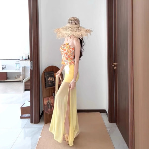 黄色碎花上衣+半身裙套装
