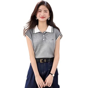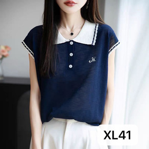 花边翻领轻薄款针织短袖T恤女装夏季新款宽松半袖polo衫上衣工厂