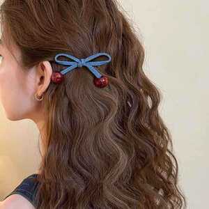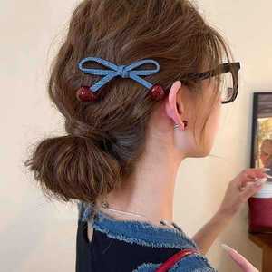 2025新款气质牛仔蝴蝶结发夹女侧边夹前额碎发刘海夹高端发卡发饰