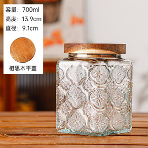复古浮雕海棠花纹玻璃密封罐子咖啡豆储物罐收纳玻璃罐零食茶叶罐