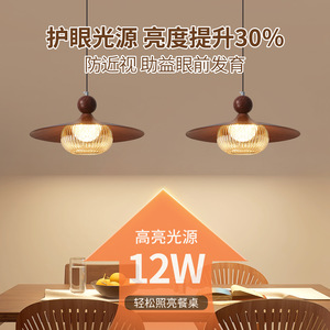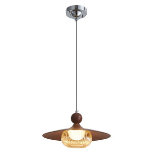 中古风餐厅吊灯美式复古创意飞碟饭厅吧台木纹个性艺术吊线灯668L