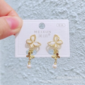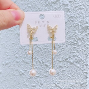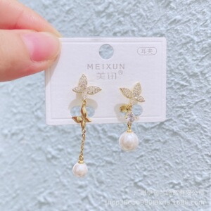 美讯2025新款无耳洞耳夹珍珠蝴蝶系仙女风精致小众设计感耳夹预售