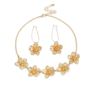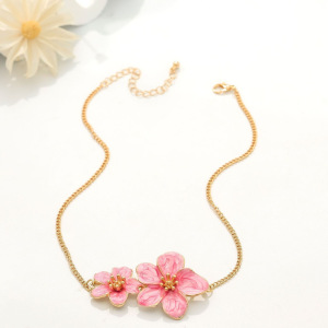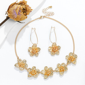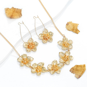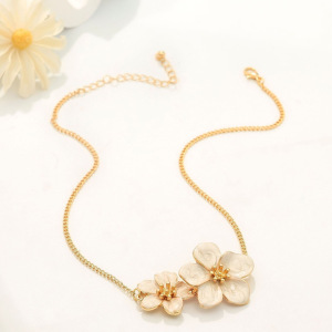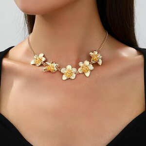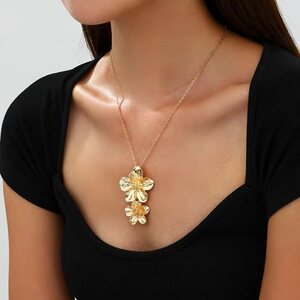 欧美跨境金属褶皱花朵吊坠项链复古高级时尚气质感花瓣锁骨链项饰