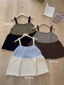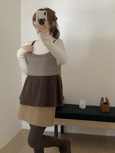 木四韩系甜美早秋针织马甲女宽松显瘦叠穿裙摆式毛衣吊带背心6480