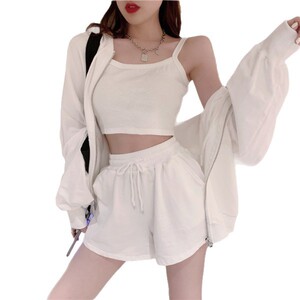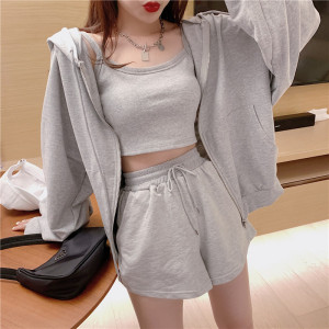 【官图~65鱼鳞】运动休闲套装新款女潮背心短裤洋气时尚网红三件