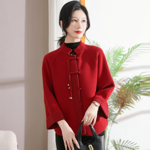 妈妈秋冬装中式上衣时尚国风小褂中老年呢子外套针织开衫洋气衣服