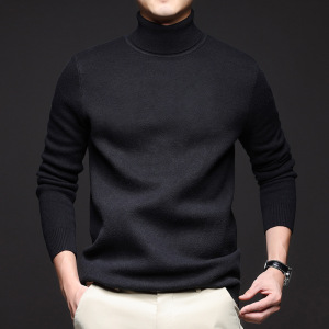 跨境男士毛衣高领秋冬加绒加厚保暖纯色一体绒长袖针织打底衫毛衣