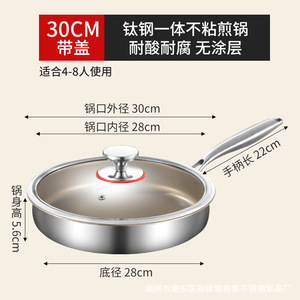 【316L有钛五层钢】30cm煎锅带盖