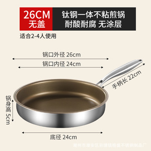【316L有钛五层钢】26cm煎锅无盖
