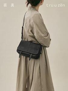 裘真经典植鞣牛皮信使邮差包休闲百搭复古通勤肩斜挎腋真皮包包女