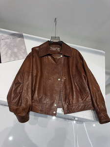 真皮油蜡2025秋冬新款机车绵羊皮皮衣外套龟裂纹时尚上衣飞行夹克