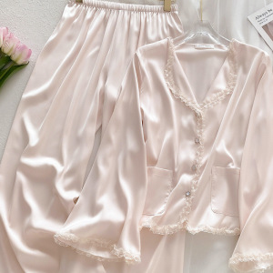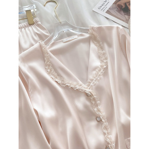 300斤法式宫廷风真丝睡衣女春秋长袖甜美公主冰丝家居服套装夏季
