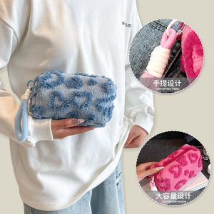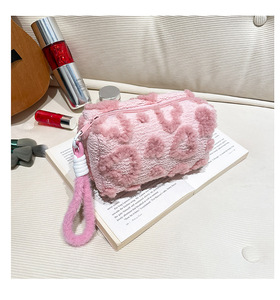 手拿包女可放手机简约百搭日韩化妆包新款毛绒收纳拉链手拎包批发