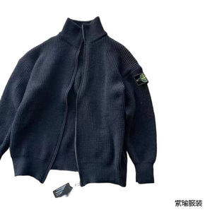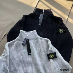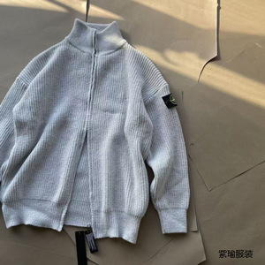 石头开衫毛衣秋冬季重磅情侣针织纯色立领宽松拉链针织衫男女外套