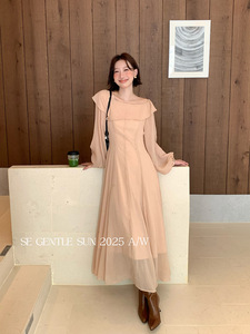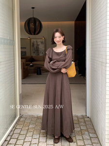秀熙熙十三行2025秋季白标气质荷叶边天丝高腰长袖连衣裙女88448