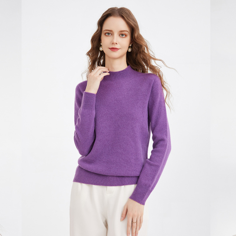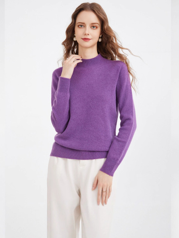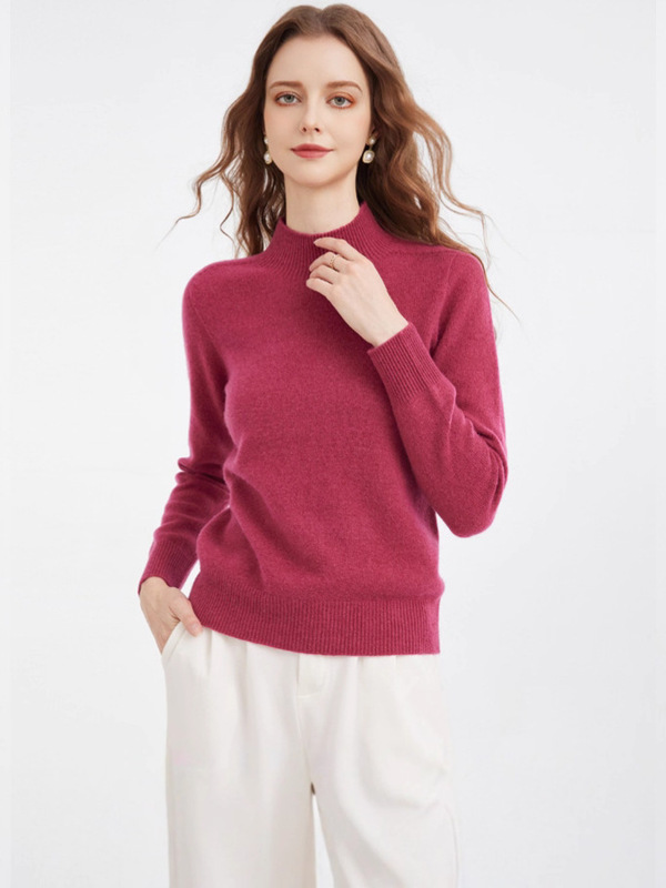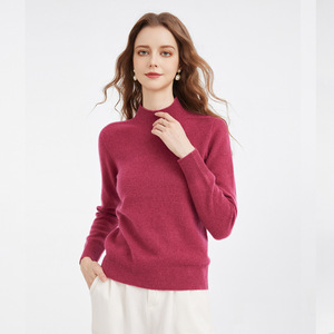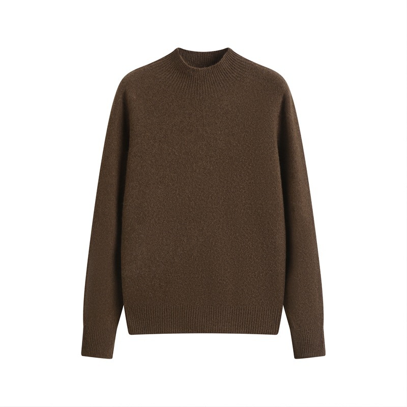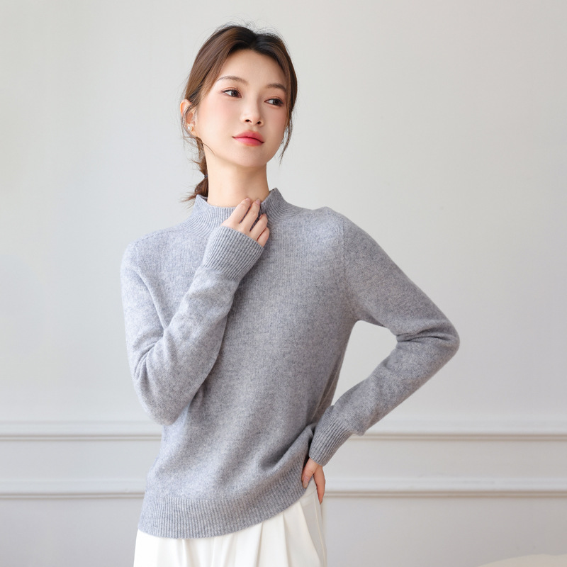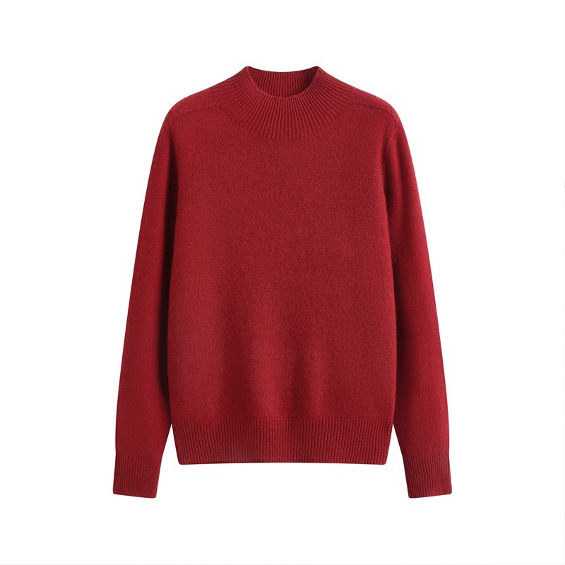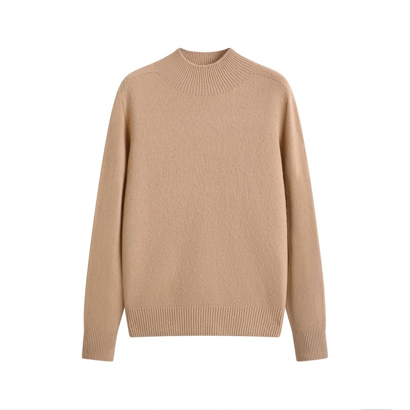 秋冬无缝半高领加厚纯色山羊绒衫女气质简约宽松针织打底保暖毛衣