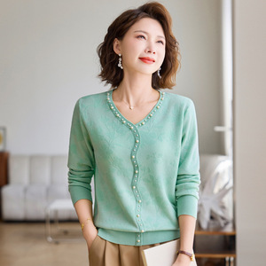 新款洋气妈妈短袖上衣中年女式针织衫立领长袖女士小衫婆婆打底衫
