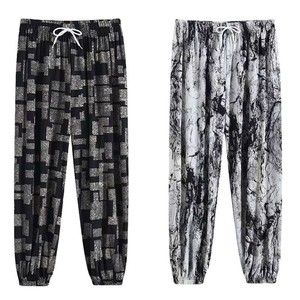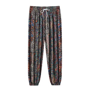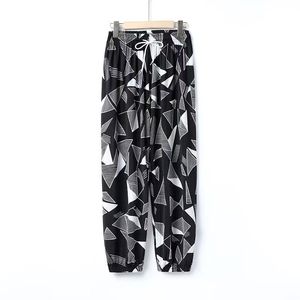 夏季冰丝灯笼裤中老年女大码妈妈防蚊裤高腰宽松萝卜裤休闲束脚裤