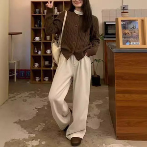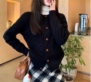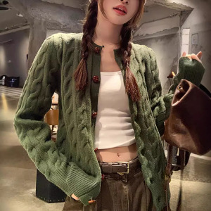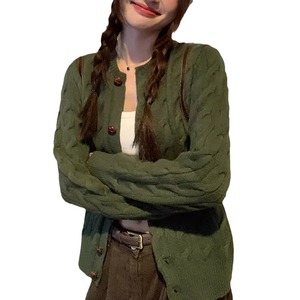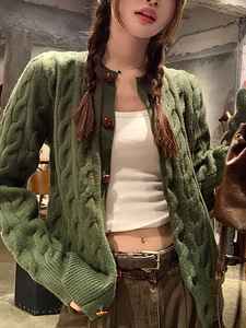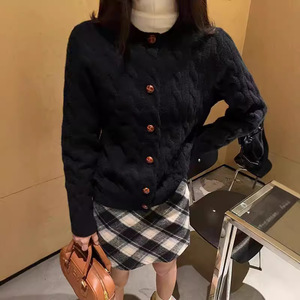 2025跨境新款软糯毛衣外套女韩系秋冬学院风外搭复古绞花针织开衫