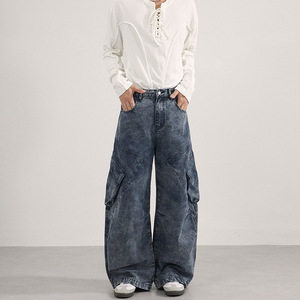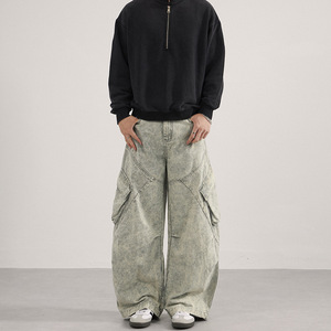 LKTM男装 美式高街cleanfit解构工装裤男女多口袋廓形垂感弯刀裤