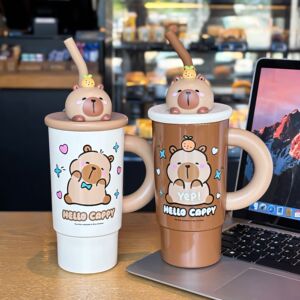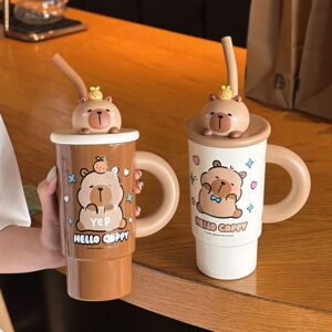 可爱卡通卡皮巴拉吸管杯办公室大容量水杯学生喝水杯子家用冰霸杯