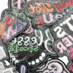 现货彩色英文刺绣布贴包包装饰补丁贴熨烫电脑绣花绣花标跨境供应