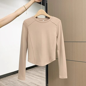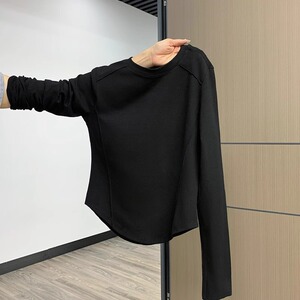 感鱼骨圆领长袖T恤女2025春秋冬新款不规则下摆打底衫正肩上衣服