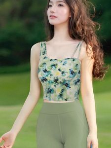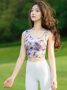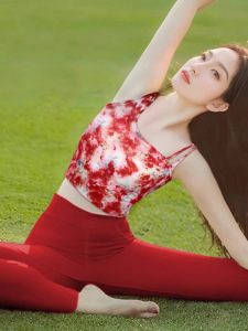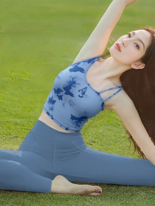 2025超火瑜伽服国风晕染印花带胸垫背心普拉提训练运动健身上衣夏