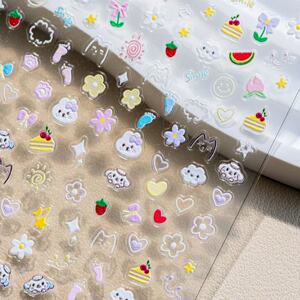 可爱花朵浮雕美甲贴纸立体蝴蝶结兔兔小花童趣儿童指甲贴ccd装饰