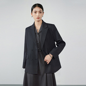 老钱B备条纹经典戗驳领小西装女2025秋季新款高级感西服外套上衣