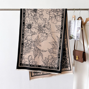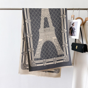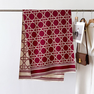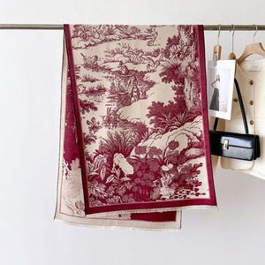 秋冬季复古风保暖围脖披肩经典山水字母印花装饰围巾仿羊绒大披肩