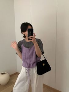 秋季韩系叠穿小清新简约镂空针织小吊带显瘦百搭女钩花G1424