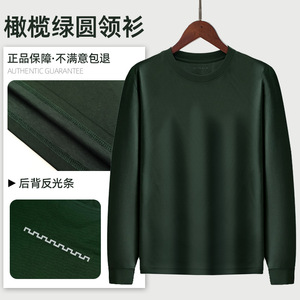 新式灰绿色长袖体能服训练服男圆领衫带反光条t恤上衣男春秋速干