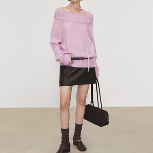 CHIC奢柔银闪珠片拉毛纱多穿造型一字肩毛衣+腊肠围巾2025秋