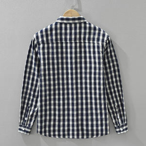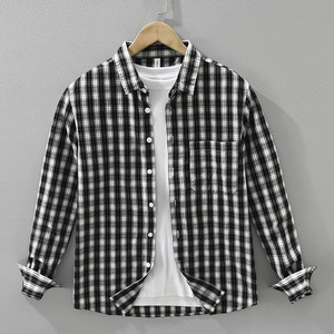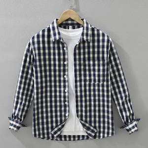 7685日系格子清新长袖衬衫男士时尚百搭文艺休闲宽松上衣一件代发
