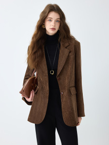 2025秋冬新款时髦西装外套女高级感英伦风气质简约灯芯绒西服上衣