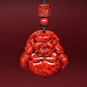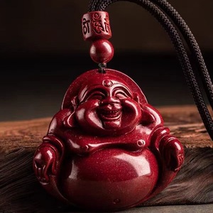 天然原矿朱砂弥勒佛吊坠高含量紫金砂帝王红砂本命年项链吊坠批发