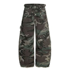 G6841美式复古男女街头高级感迷彩不规则设计高街男式弯刀工装裤