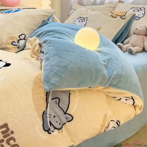 牛奶绒四件套2025新款秋冬季珊瑚绒宿舍被套床单冬天加绒床上用品