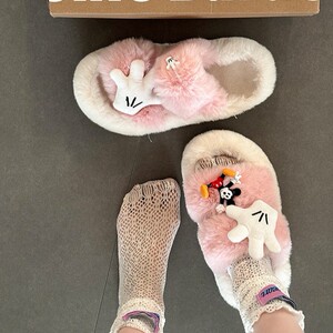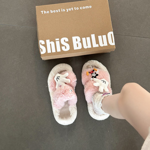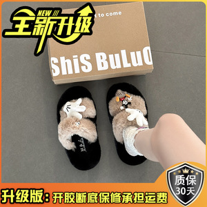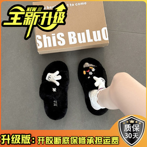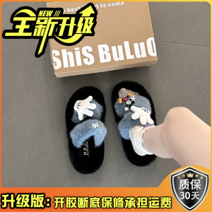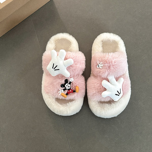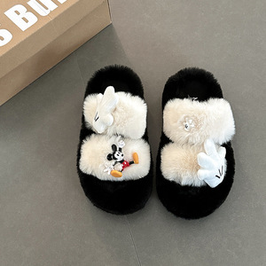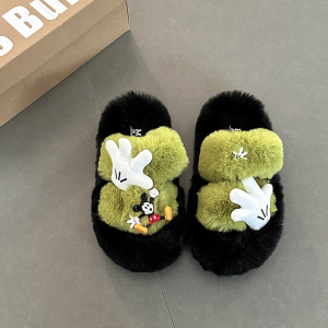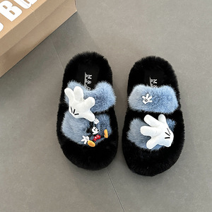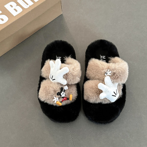 卡通米奇毛毛拖鞋女士时尚可爱2025年冬季新款外穿棉拖鞋毛毛棉鞋
