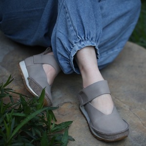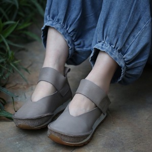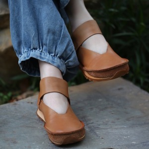 广州复古民族风头层牛皮V口单鞋女休闲软底厚底平底女鞋8803-2